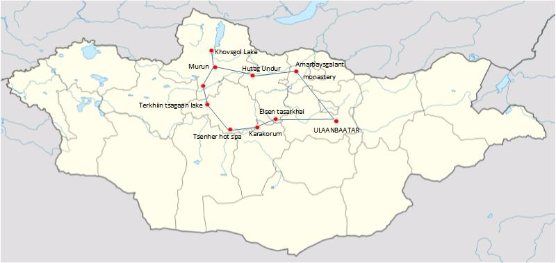 Highlights: Deer stone statue- ancient historical site, purest Khuvsgul lake National Park, Orkhon waterfall, Kharkhorin - the ancient capital of Mongol Empire & Erdenezuu monastery, Elsen Tasarhai & mountain of Hugno Khaan, Tsenkher hot spa, Terkh White lake, Khorgo- the extinct volcano.